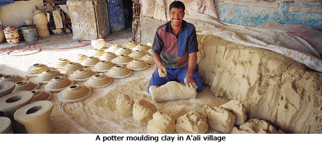 No visitor can fail to be fascinated watching artisans at work in A'ali which is the centre of Bahrain's pottery industry. The potters still fire their pieces using ancient kilns and traditional methods that have been handed down generation after generation. Many of the pieces resemble those found in ancient Dilmun digs.