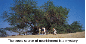 To this day, the tree's source of water remains a mystery. Some believe it gets its nourishment from an underground spring, but that doesn't explain the complete lack of vegetation in the area surrounding it.