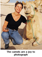 Not far away, be sure to visit the camel farm in Janabiya. Here in the late afternoon we witnessed the impressive sight of big groups of camels returning from a day's grazing out on the semi desert scrubland. They made great photos as they lined up to drink at the long water troughs. There is nearly always at least one baby camel to be seen as well which needless to say is a delight for children, besides being irresistible to photograph!