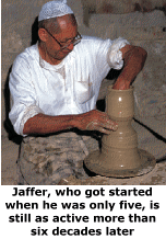 While he has a lot of family help in the trade, Jaffer even now often sits at the wheel and creates beautiful pots.