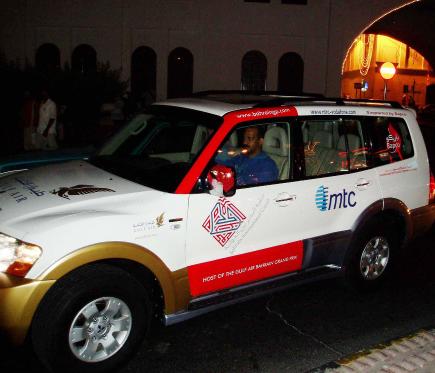 Ali Mushaima in the Mitsubishi Pajero at the start of the journey that will take him across Arabia and Europe