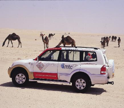 Camels and sand as far as the eye can see on the drive through Saudi Arabia