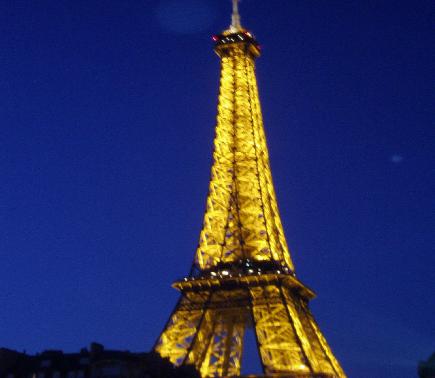 The Eiffel Tower presents a magnificent sight on the night of our arrival in France