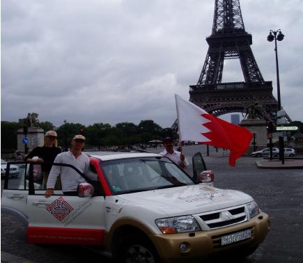 The Bahrain flag flies near the Eiffel Tower