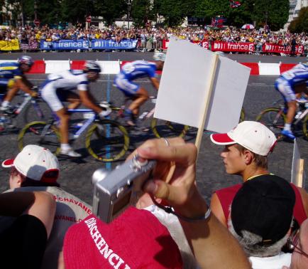 Spectators line the Champs Elysses in Paris to cheer on cyclists in the Tour De France