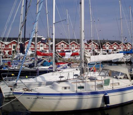 The town of Skagen in northern Denmark. The town is well known for the beautiful old red storehouses on the harbour.